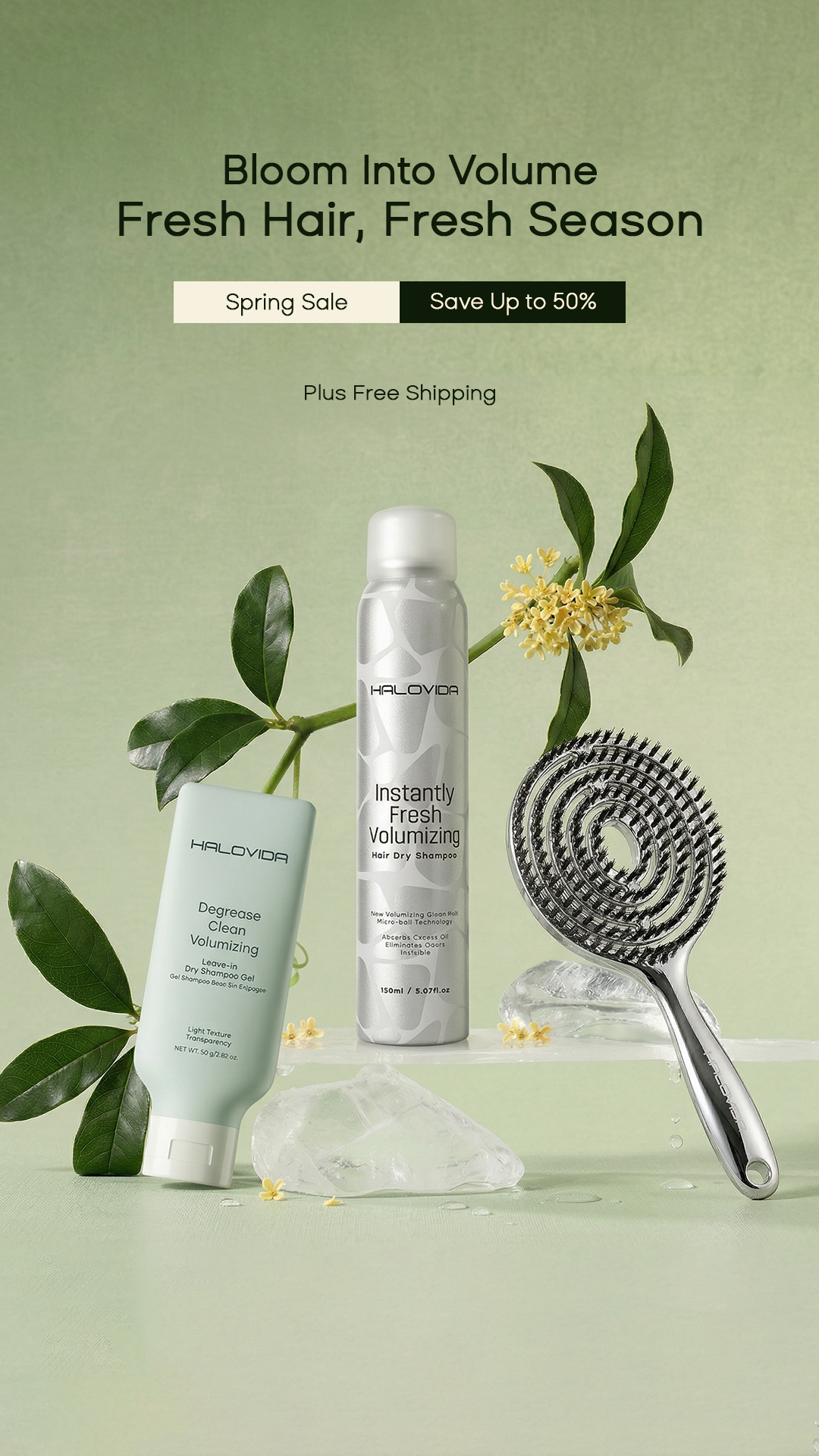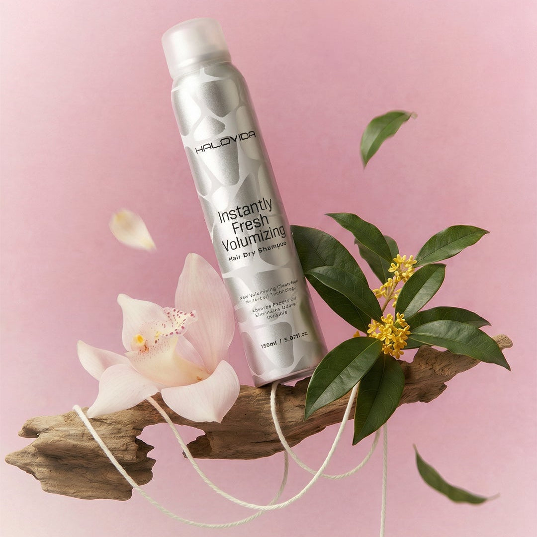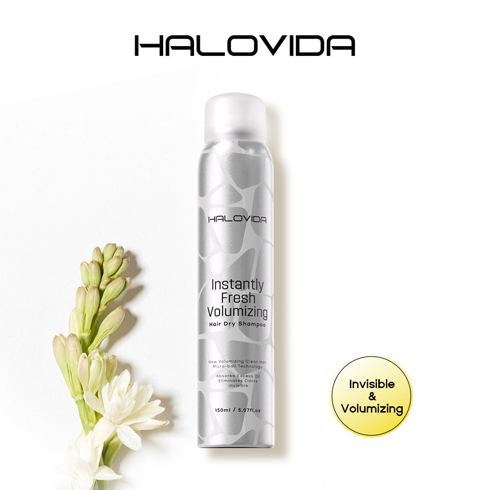 Say goodbye to greasy, flat hair! Halovida Instant Fresh Volumizing Dry Shampoo. Quickly absorbs oil and instantly boosts root volume for refreshed, revitalized hair. Get effortlessly full hair anytime, anywhere!