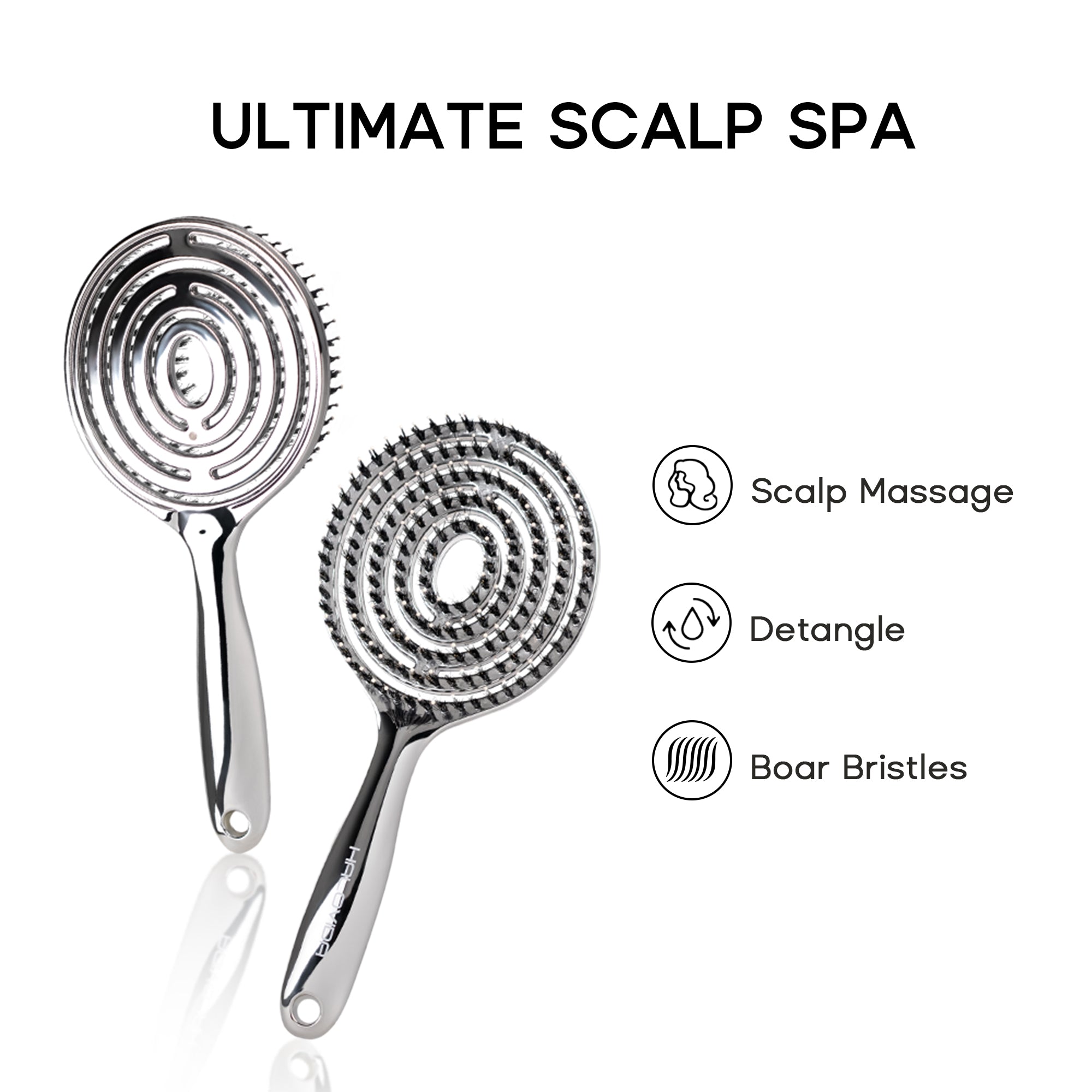 The Halo Flex Spa Brush perfectly combines scalp massage with luxurious hair care. With its innovative flexible design, the bristles gently massage your scalp, delivering an unparalleled soothing experience. Professionally designed bristles, combined with natural boar bristles, effortlessly detangle your hair, leaving it smooth and glossy with a healthy shine.